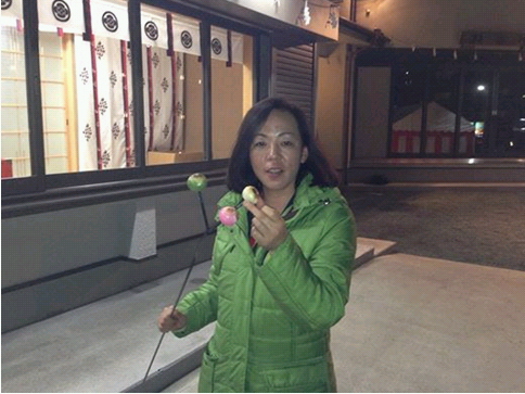 皆さんと一緒に炎であぶった三色団子が寒さを吹き飛ばしてくれました。