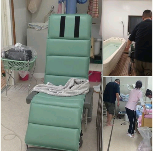 施設内には様々な工夫が凝らされております。車いすのまま入浴が可能な