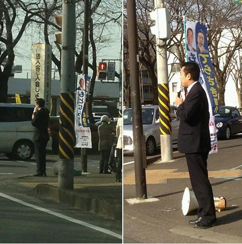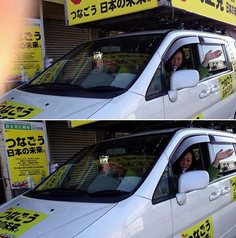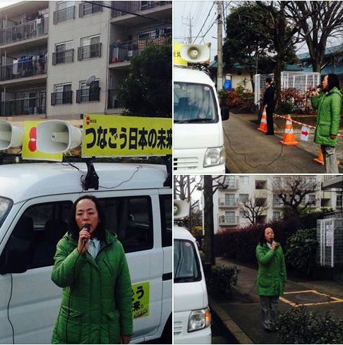 今日は街宣車での遊説です。