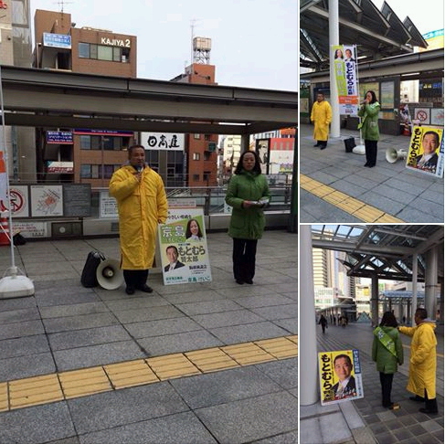 と題しまして、街頭活動をもとむら事務所と共に行いました。