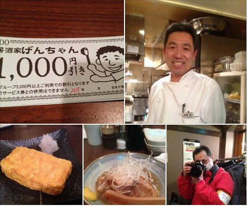 居酒屋げんちゃんにお伺い。なんと次回使える千円券がもらえる。