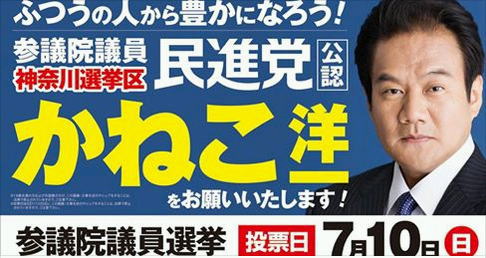 「ふつうの人から豊かになろう!」かねこ 洋一参議院議員候補 川崎駅街頭。