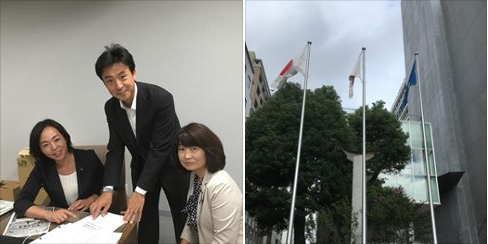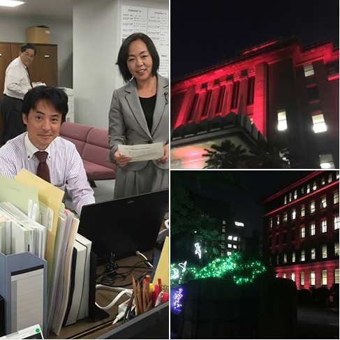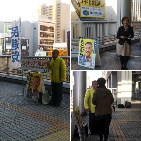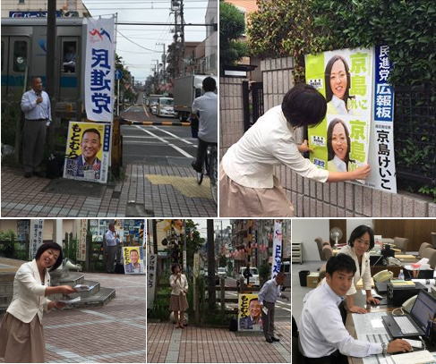 町田駅での街頭活動の後、ボランティアの方々とポスター掲示板作業や