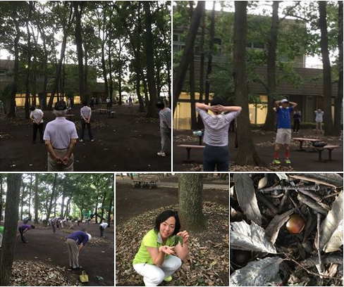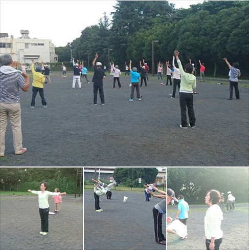 今朝のスタートは、ボランティアさんと一緒にラジオ体操と南区役所駐車場で開催されている