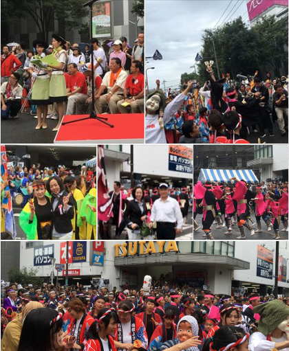 大勢のボランティアの皆さん 猛暑の中繰り広げた街角街頭では、共に汗だくになり