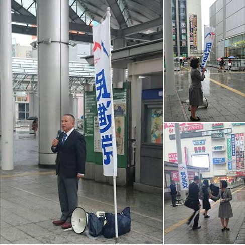 今朝は昨日までの暑さから一転して涼しく感じます。14区総支部街頭活動で