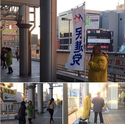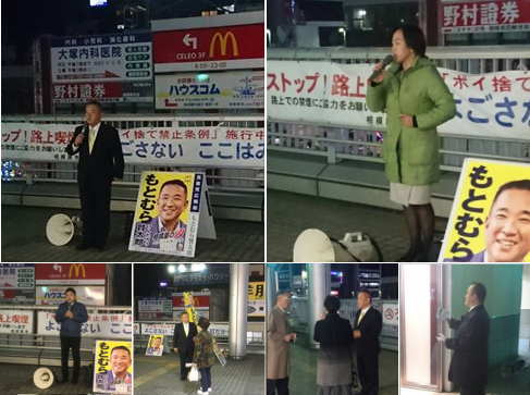 江成市議も参加頂き、大勢の仲間が駆けつけ京王口や南口など方々に分散して