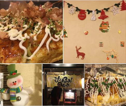 お好み焼きでご機嫌な私です。店内も可愛らしくクリスマスバージョンでした。