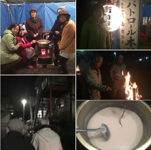 パトロールです。本部のある会場では、婦人部の皆さんが甘酒を作り、パトロールから