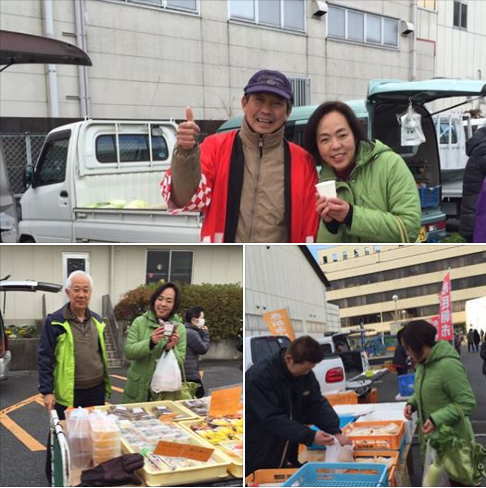 皆さんによる朝市「なかいち」へ。毎月第2、第4日曜日に古淵会場、大野台会場と