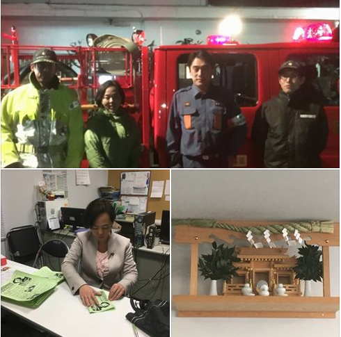 県政レポートの作成など準備を行った後、消防団の皆さまに寒い中での