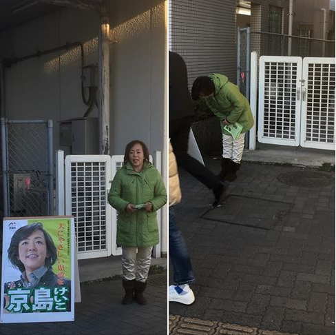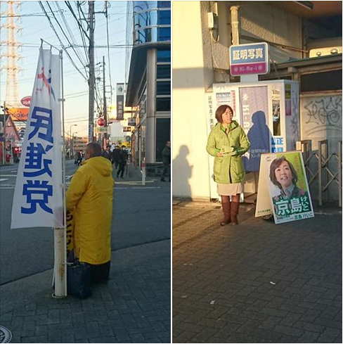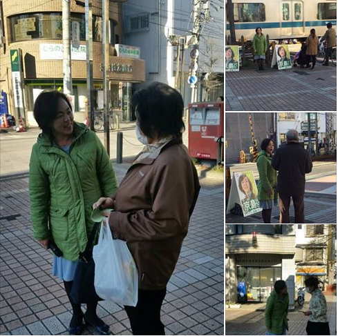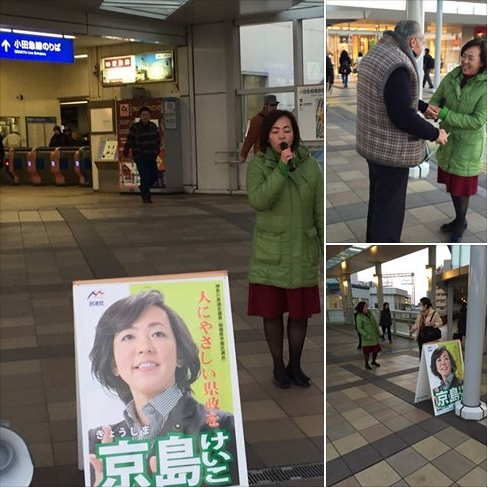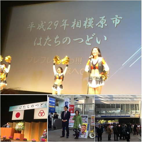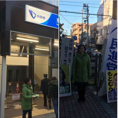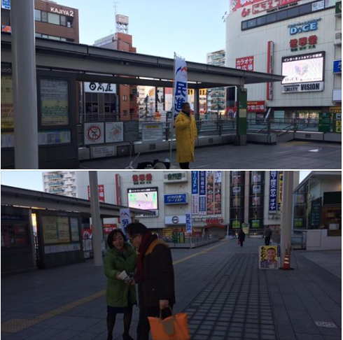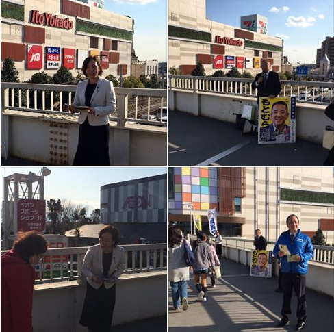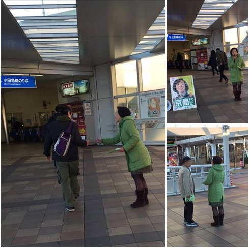 2017年 最初の駅街頭は古淵駅。初詣にこれからお出かけになられるご家族連れの