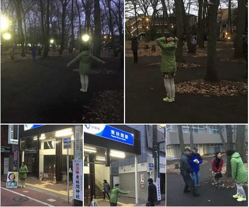 林間公園のラジオ体操に参加した後は、東林間駅街頭活動を行いました。