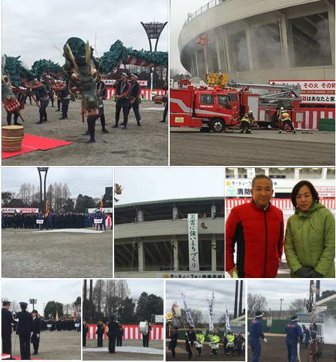 相模原市消防出初式。サーティーフォー相模原球場で開催。第1部では、表彰や