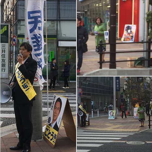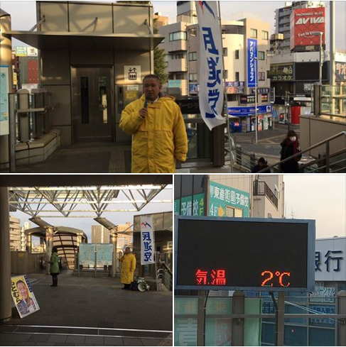週末の日曜日 地域でも様々な行事が行われています。本日は駅ではなく街頭にて