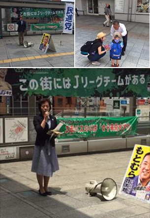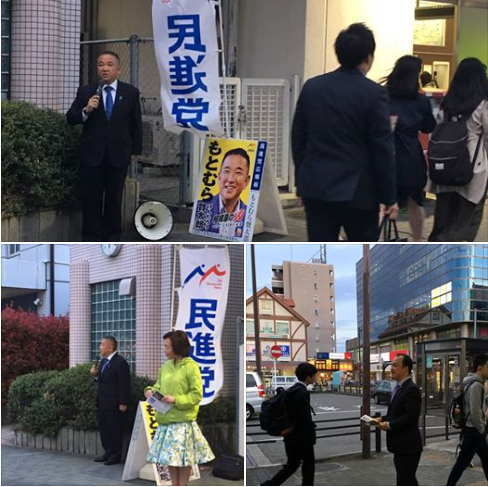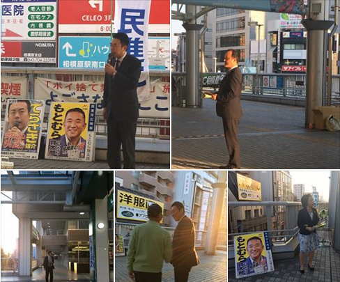 14区総支部街頭活動。もとむら賢太郎総支部長を先頭に チーム民進党 相模原一丸となり