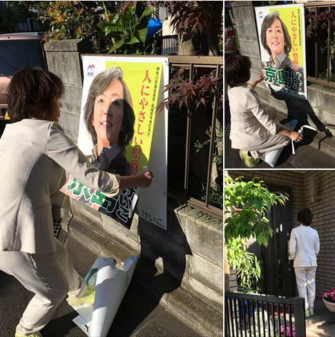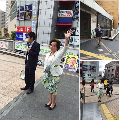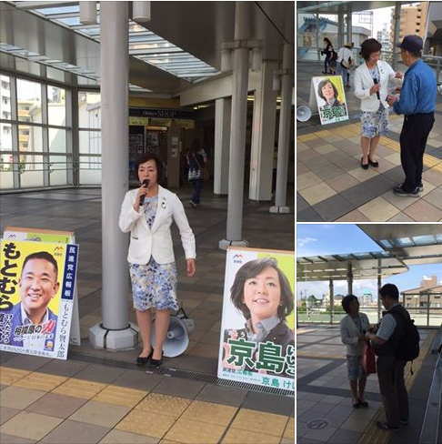小田急相模原駅街頭活動からスタート。ラジオ体操帰りの方や学生さんからも