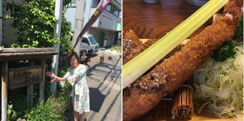 村松さんのトンカツは、お肉は柔らかく衣はサクサク、アクセントの一本丸ごとセロリも