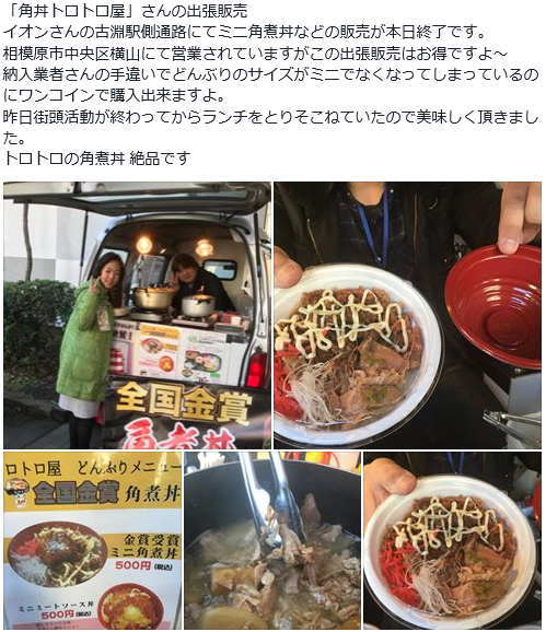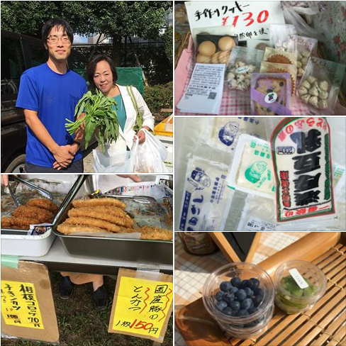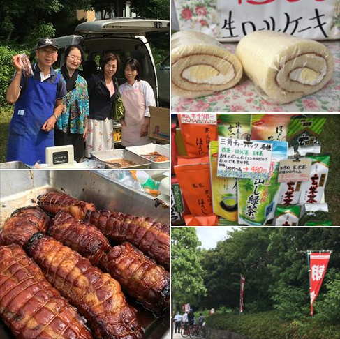 古淵会場。ヒロセ洋菓子店の珈琲ゼリーやロールケーキや小川ミート店の牛すじ煮や