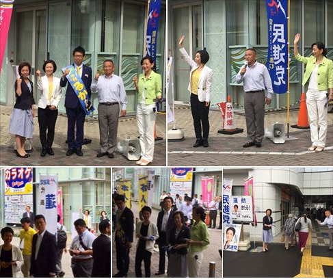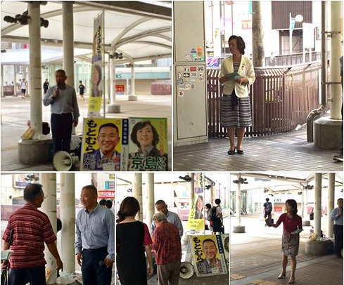 朝の駅街頭活動とは違い、お買い物帰りやご家族お揃いの方々から直接