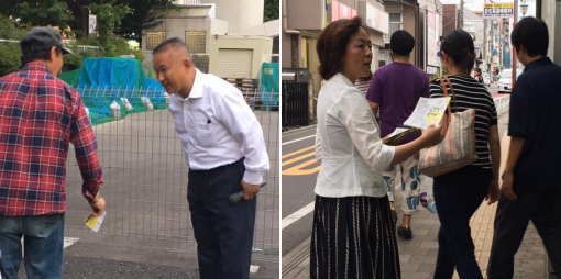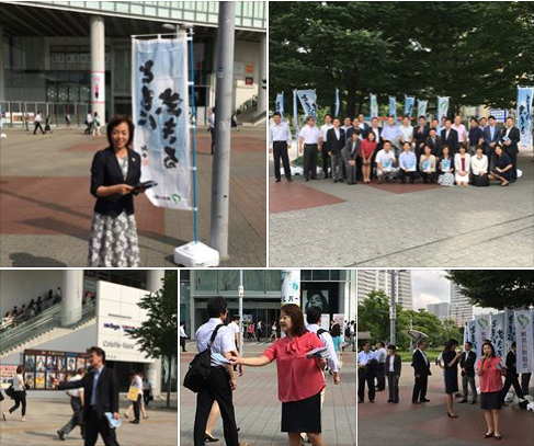 テーマにしたビラの配布をしたりマイクでの訴えを行いました。大手企業でお若い女性が