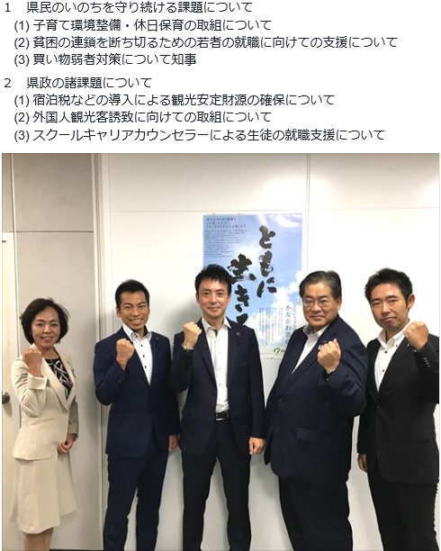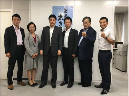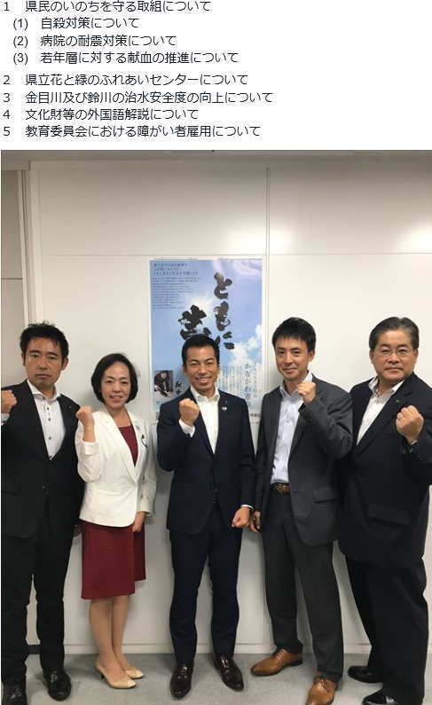もとむら賢太郎衆議院議員が県議会会派控え室に激励に来られました。