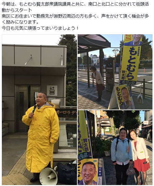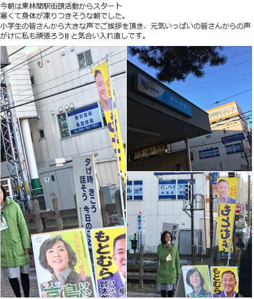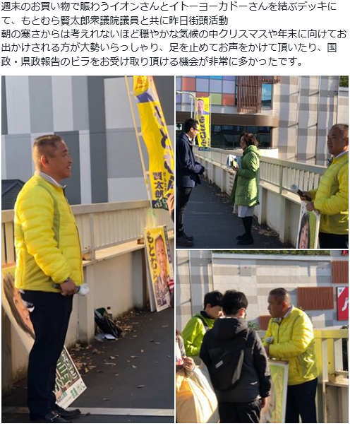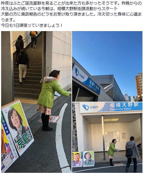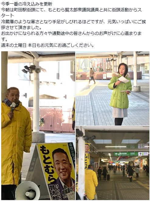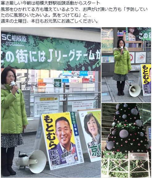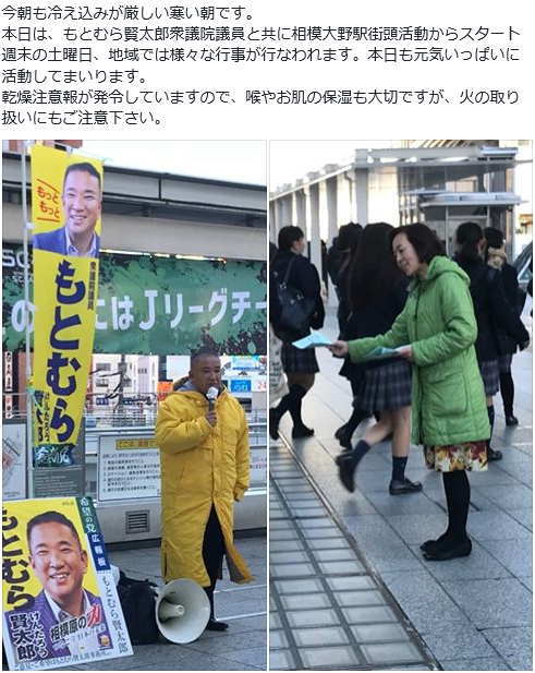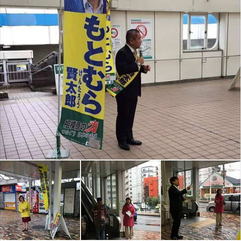 今朝は、もとむら賢太郎衆議院議員と共に古淵駅にて街頭活動からスタート。