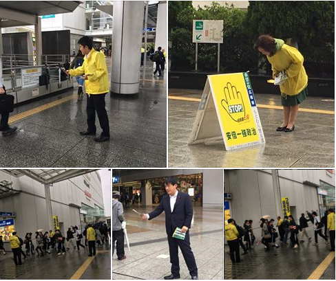 古淵駅街頭にて相模原地域連合の街頭活動に参加。有期労働契約や派遣などを