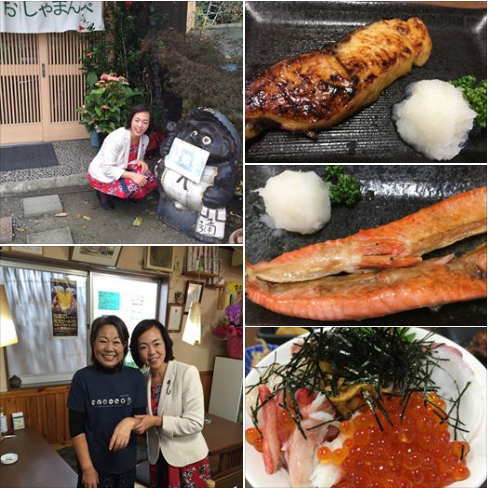 鮭ハラス焼き定食や海鮮丼などを皆んなでシェアし堪能してきました。