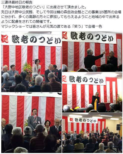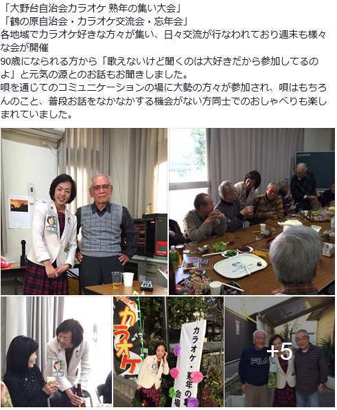 とお話があると会場からは歓声が。演芸披露では、桜井市議の素敵な歌の披露からスタート