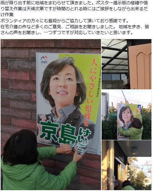 爽やかな秋晴れ本日は地域をまわり、皆さんへのご挨拶をしながらポスターの修繕や