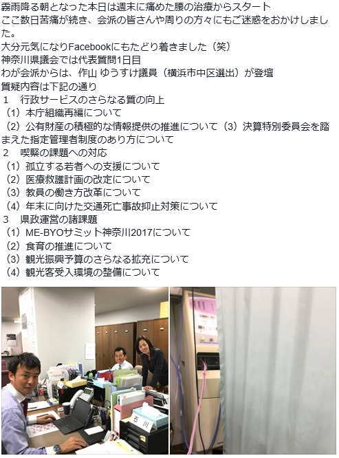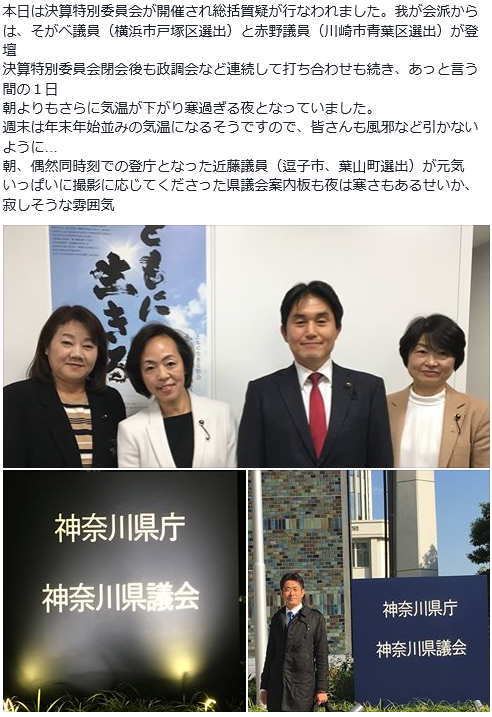 県議会では決算委員会が開催。我が会派からは、同期の石川議員(川崎市麻生区選出)が
