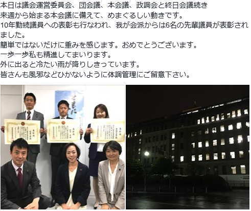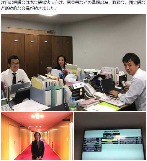 県政報告を行なっております。 選挙投開票日翌日から決算委員会が開催され、