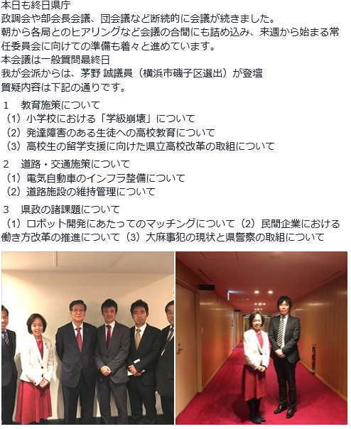 政調会と会議続きの1日となりました。会派の中での役割分担で各々に分かれて