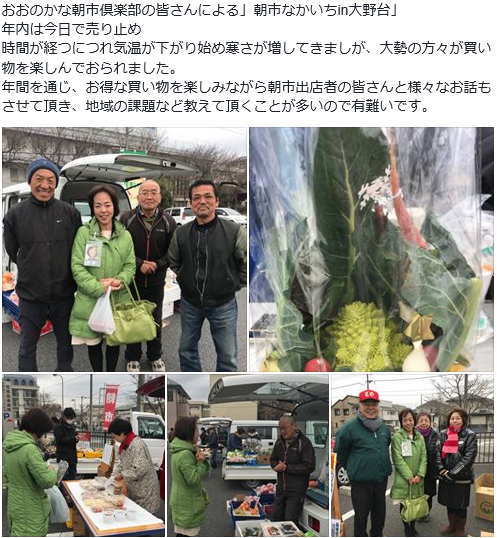 「おおのなか朝市倶楽部の皆さんによる朝市」本日は新渕第二自治会 一時避難場所広場での